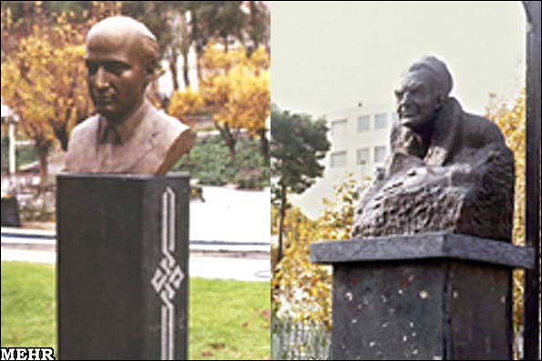 پرتره استاد شریعتی، اثر آقای حمید شانس- محل و سال نصب: پارک شریعتی سال 1372- وزن تقریبی: 70 - 60 کیلوگرم و نیم تنه استاد شهریار، اثر مرحوم استاد قهاری - محل و سال نصب: پارک دانشجو سال 1377- وزن تقریبی: 90 کیلوگرم