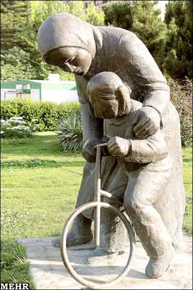 مجسمه مادر و فرزند، اثر شعله هژیر ابراهیمی/ محل و سال نصب: میدان صنعت سال 1383- وزن تقریبی: 400 کیلوگرم